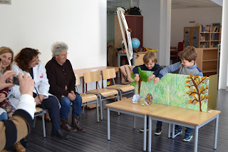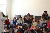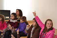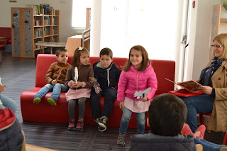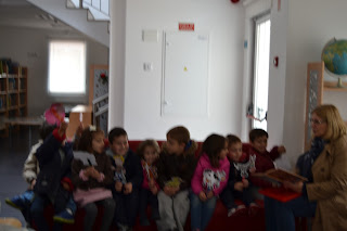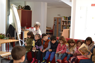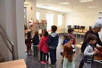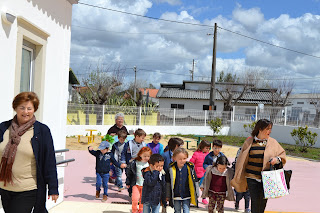Maceira, acompanhadas pela educadora Célia Prior, chegarem à BE da EB de