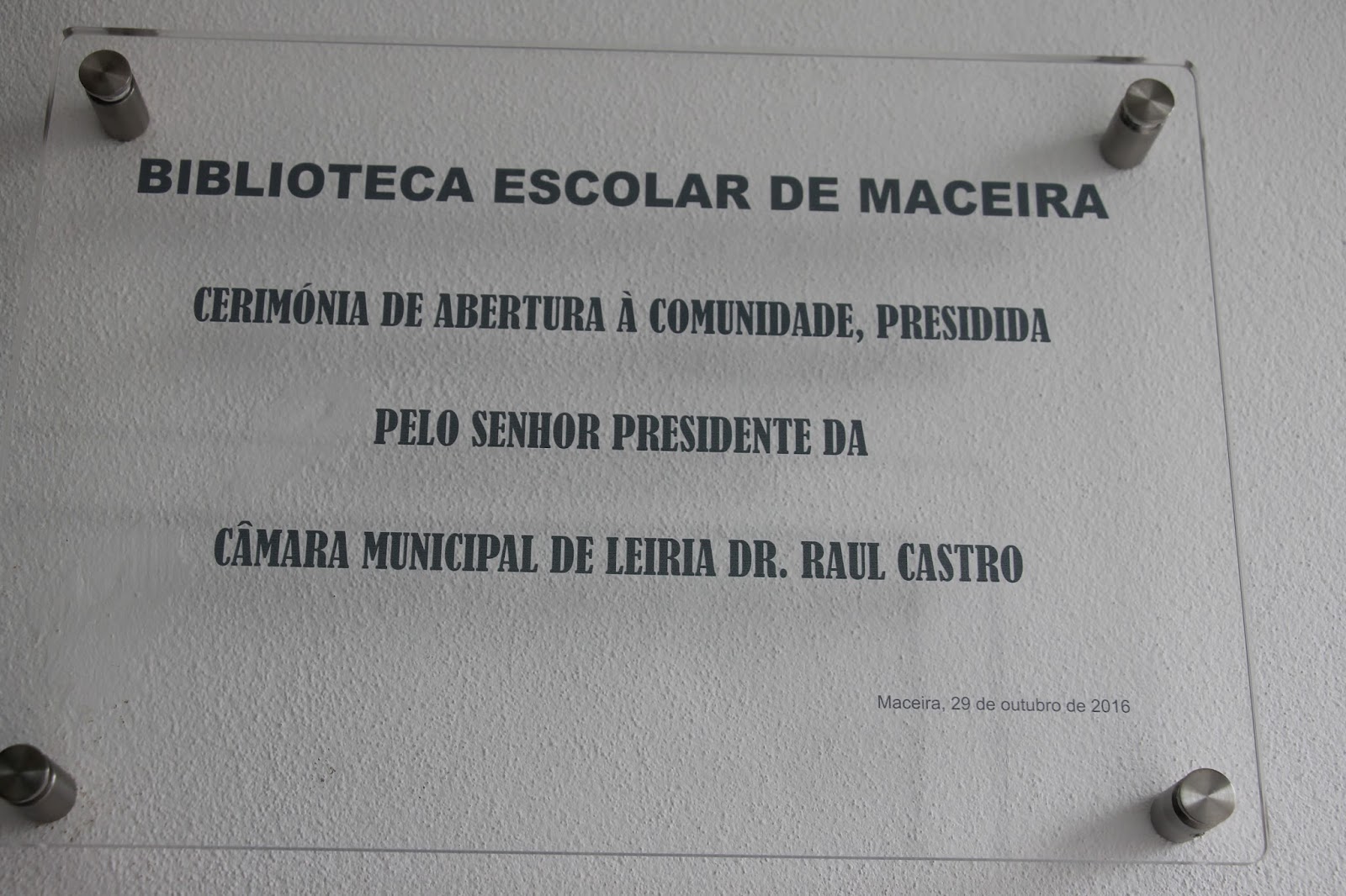 Seguidamente, num momento mais formal, ouviram-se os discursos do Diretor do Agrupamento de Escolas Henrique Sommer, Dr. Jorge Bajouco, do Presidente da Junta de Freguesia de Maceira, Sr. Vítor Santos, da Coordenadora Interconcelhia - RBE, Prof.ª Lucília Santos e, por fim, do Presidente da Câmara Municipal de Leiria, Dr. Raul Castro.